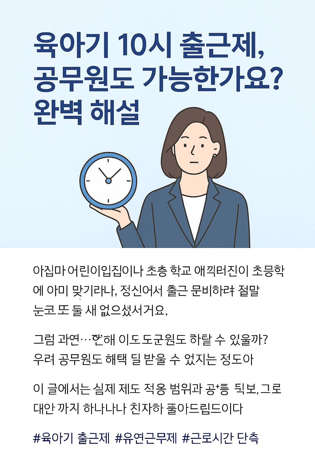 #육아기출근제 #10시출근 #공무원근로시간 #육아제도 #근로시간단축 #시차출퇴근 #직장인육아 #공무원육아 #워킹맘제도 #정부정책 #근무제도 #맞벌이부부혜택 #초등학교자녀 #재택근무 #공공기관근무 #유연근무제 #육아지원제도 #가족친화제도 #육아복지 #직장내제도