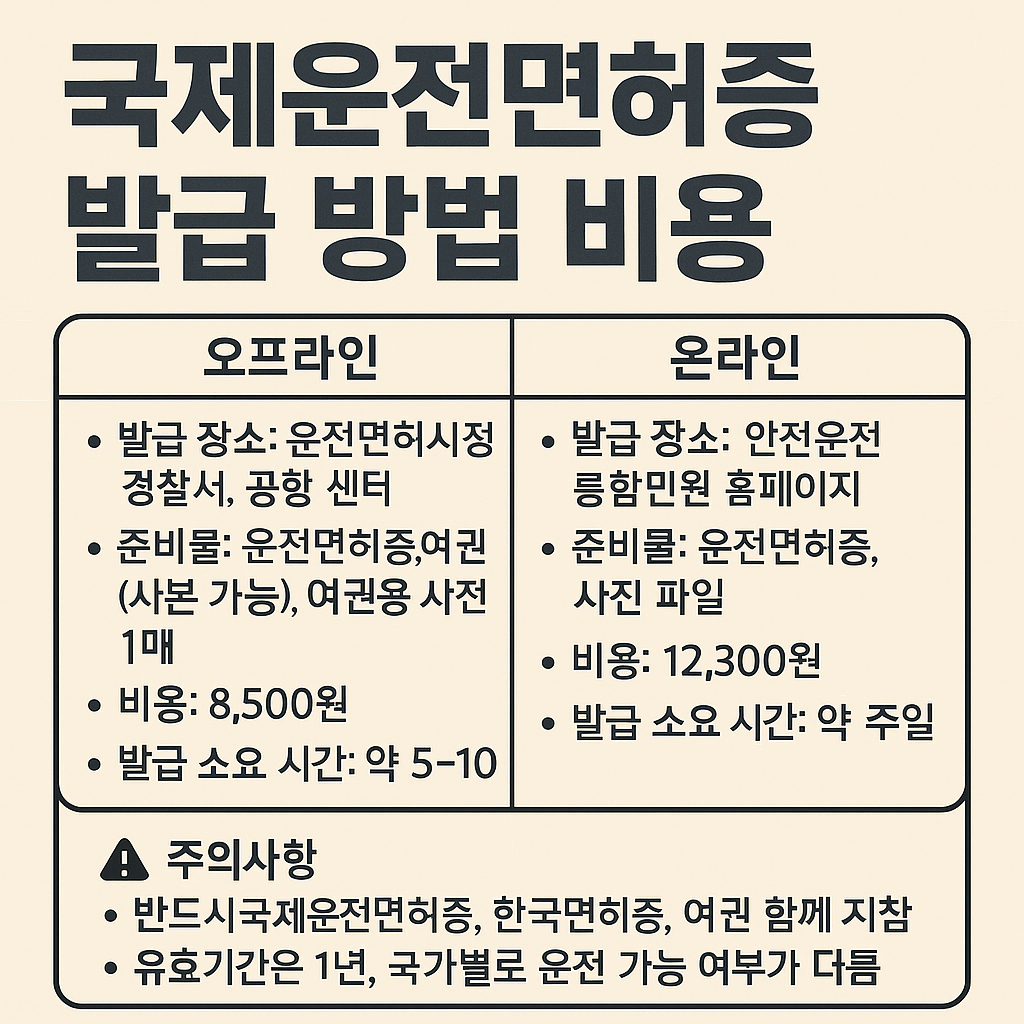 - ✅ 발급은 오프라인(면허시험장, 공항) 또는 온라인으로 가능