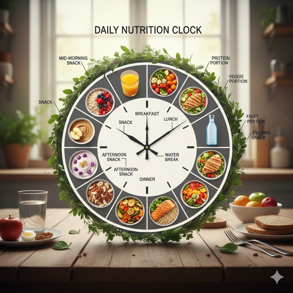 ⭐⭐⭐⭐⭐[하루 식단을 균등하게 배분한 시계 모양의 식단 표 이미지 삽입]