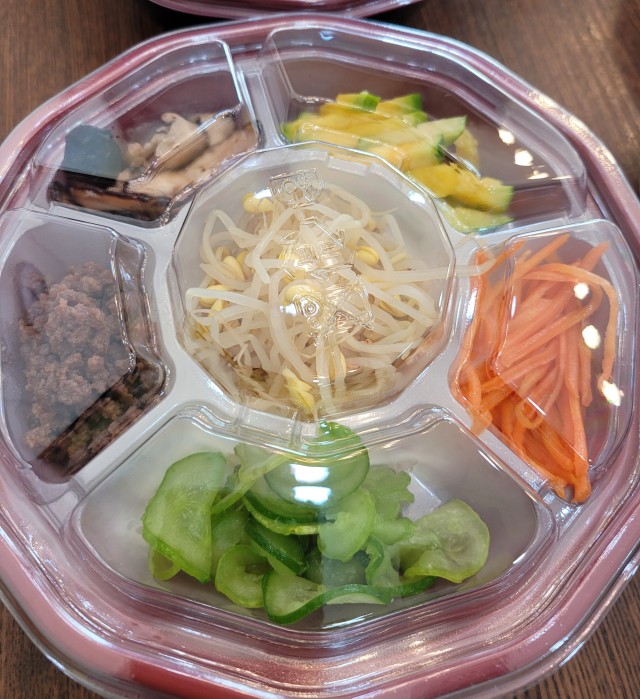 먹을 때 전자레인지에 2~3분 데운 뒤, 참기름과 고추장만 새로 섞어 비비면
