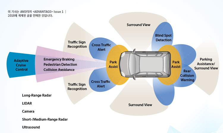 - 전방 충돌 경고(FCW), 어댑티브 크루즈 컨트롤(ACC), 사각지대 감지(BSD), 후측방 접근 경고(RCTA) 등