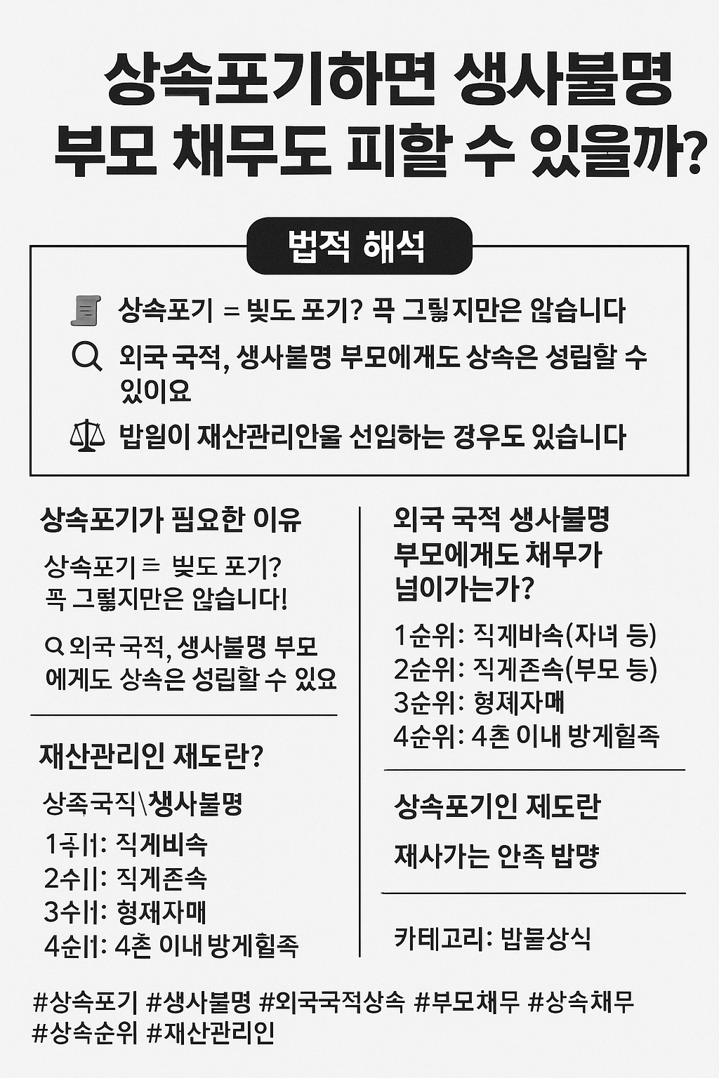 #상속포기 #생사불명 #외국국적상속 #부모채무 #상속채무 #상속순위 #재산관리인 #상속법해석 #상속책임 #민법상속 #법률상식 #실종선고 #재산관리청구 #상속포기방법 #상속포기기간 #배우자상속 #상속포기절차 #빚상속 #가정법원상속포기 #법정상속인