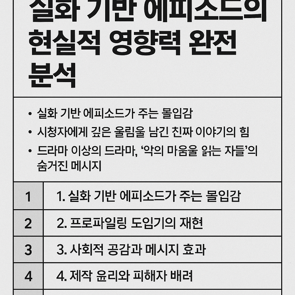 - 1. 실화 기반 에피소드가 주는 몰입감