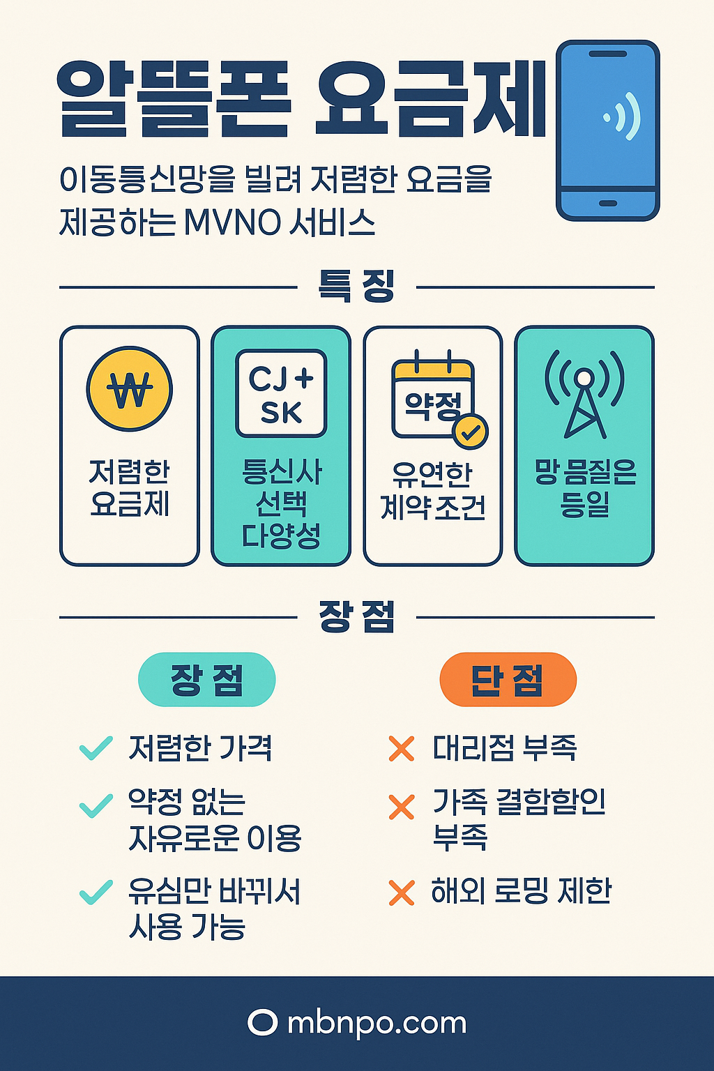 | 품질 | 통신망은 동일하여 안정적 | 일부 저가 요금제는 속도 제한 |