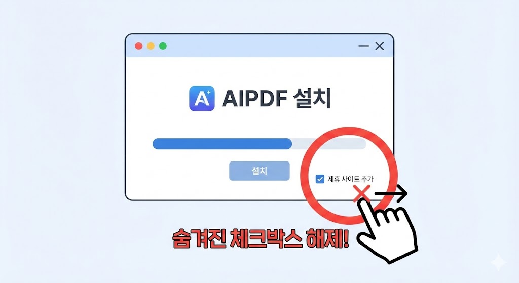 - Step 2: 설치 시작과 하단 체크박스 확인 (중요) 설치 프로그램을 실행하면 창의 오른쪽 하단에 'zum을 검색엔진으로', '알집 추가 설치' 등의 체크박스가 기본적으로 선택되어 있습니다. 순수한 알PDF 기능만 원한다면 이 체크박스들을 반드시 **해제(Uncheck)**한 후 설치 시작을 눌러야 합니다.