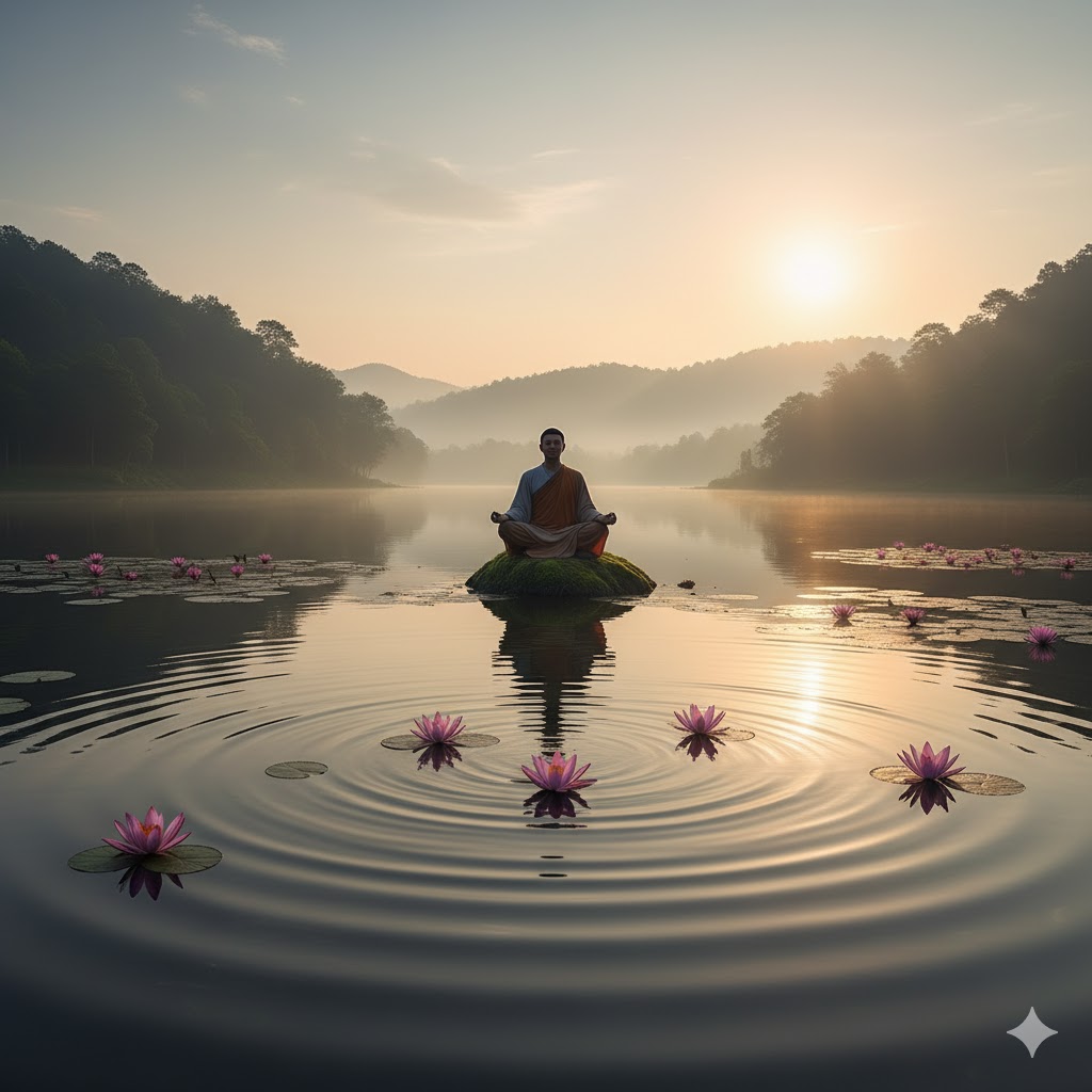 - 불면증 개선: 연꽃차 특유의 은은한 향과 이 성분들은 신경을 안정시키고 불안감을 줄여주는 데 도움을 줍니다. 이는 스트레스 해소는 물론, 깊은 수면(숙면)을 유도하여 뇌가 쉬고 재정비할 시간을 벌어줍니다. 건강한 수면은 치매 예방에 필수적입니다. 고요한 호수에 핀 연꽃과 물결, 명상하는 듯한 편안하고 안정적인 느낌의 이미지
