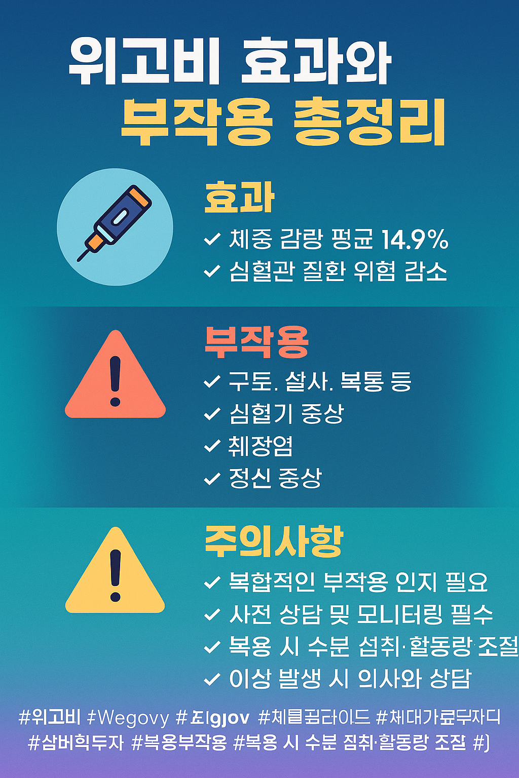 #위고비 #Wegovy #세마글루타이드 #체중감량주사 #비만치료제 #다이어트약 #위고비부작용 #GLP1 #위고비효과 #위고비주의사항 #위고비후기 #위고비사용법 #심혈관보호 #위장문제 #정신부작용 #췌장염주의 #시력부작용 #갑상선주의 #GLP1부작용 #의사상담필수