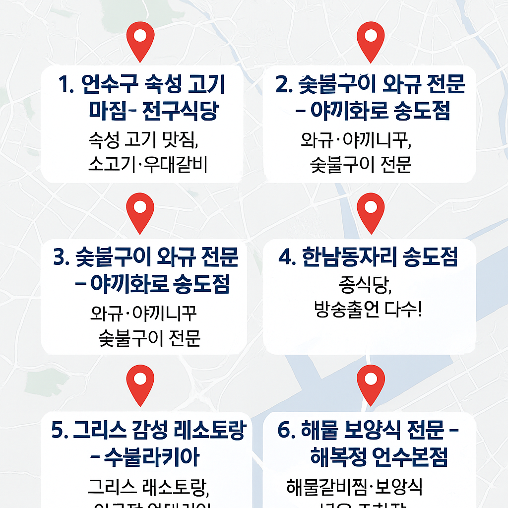 연수구는 정말 다양한 맛집이 가득한 지역이에요! 오늘 소개해드린 10곳은 각기 다른 매력을 가진 곳들이며, 어떤 상황에서든 만족도 높은 식사를 할 수 있는 장소들입니다.