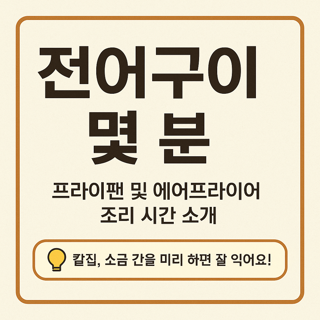 여러분! 이런 적 있으시죠?! 싱싱한 전어를 손에 넣었는데, 막상 굽기 시작하니 “몇 분이나 구워야 제대로 익는 걸까?” 고민이 되신 적이요. 전어는 구워 먹었을 때 풍미가 살아나는 최고의 가을 생선이지만, 조리 시간이 제대로 맞지 않으면 비린 맛이 나거나 과하게 타버릴 수 있어요. 그래서 오늘은 프라이팬, 에어프라이어, 오븐 등 다양한 방식에 따른 전어구이의 정확한 조리 시간과 노하우를 아주 친절하게 알려드릴게요. 누구나 집에서 바삭하고 고소한 전어구이를 완성할 수 있도록 도와드릴게요!