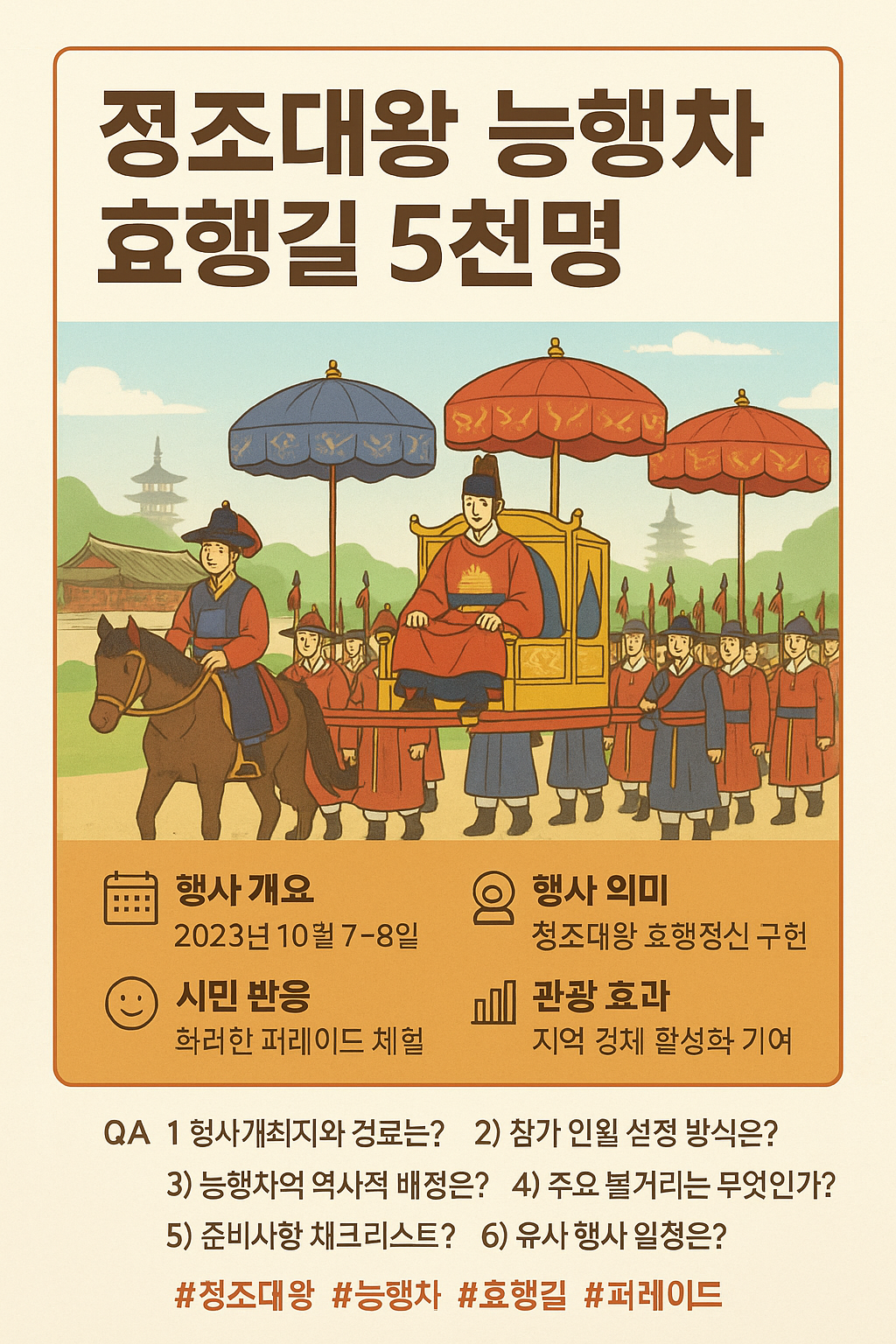| 핵심 키워드 | 정조대왕 능행차, 효행길, 5천명 참여, 전통·도시 융합 |
