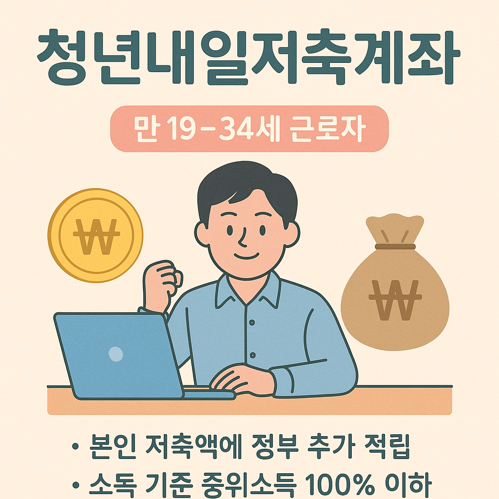 청년내일저축계좌는 만 19세~34세 근로 청년이 안정적으로 목돈을 마련할 수 있도록 돕는 제도입니다. 매월 성실히 저축하면 정부가 지원금을 함께 적립해주어, 3년 후 큰 자산을 형성할 수 있습니다. 미래를 준비하는 청년이라면 꼭 도전해볼 만한 제도입니다.