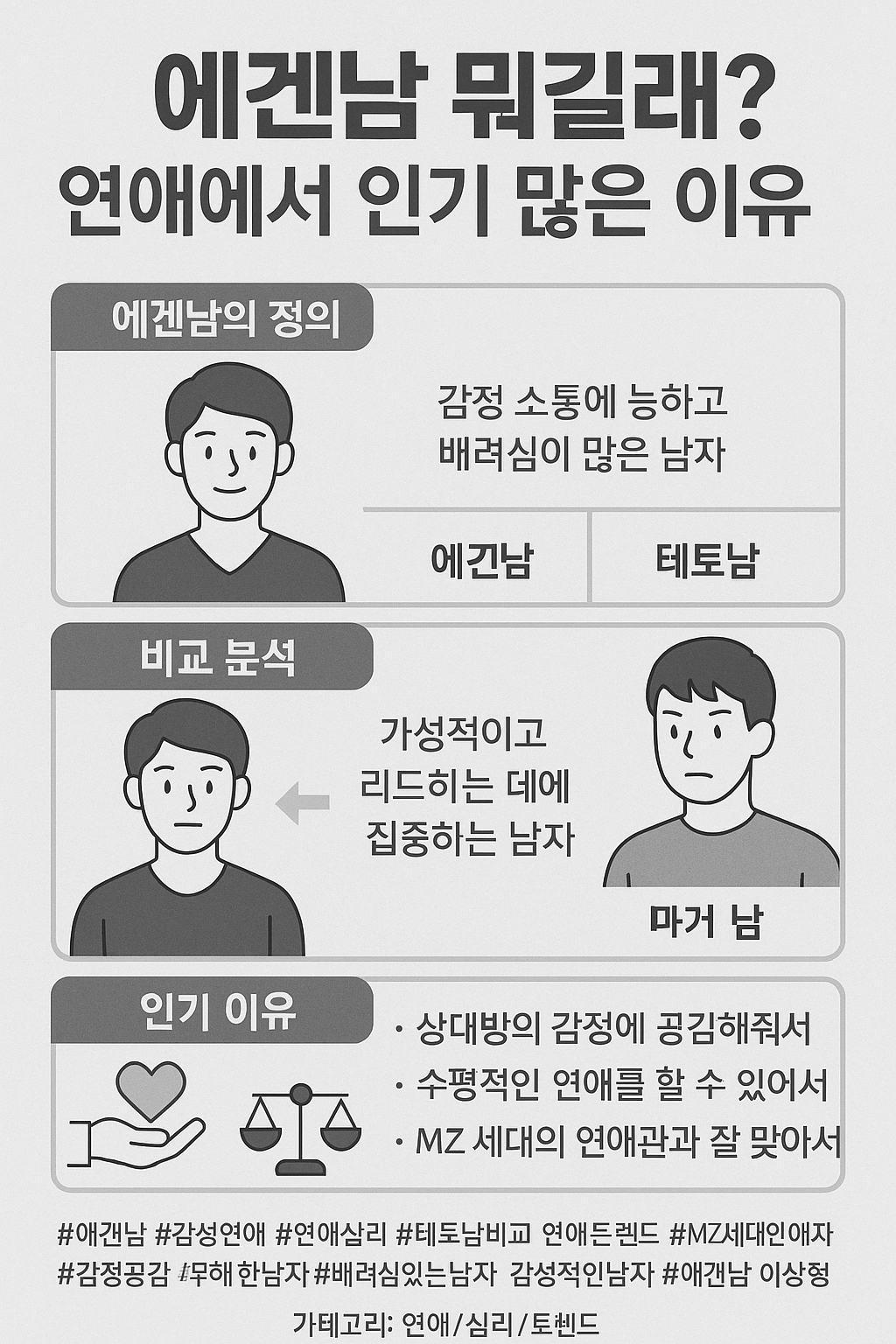 #애겐남 #감성연애 #연애심리 #테토남비교 #연애트렌드 #MZ세대연애 #감정공감 #무해한남자 #배려심있는남자 #감성적인남자 #에겐남이상형 #수평적연애 #감정표현 #심리연애 #남자성향 #남자유형분석 #트렌드연애 #감성소통 #감성남자 #이상적인남자