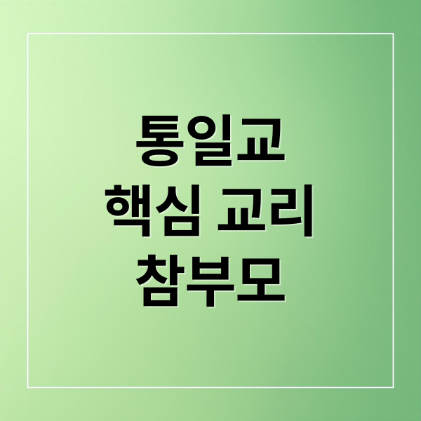 통일교의 핵심 교리는 ‘참부모’ 이념을 중심으로 합니다. 문선명은 자신을 ‘참부모’로 선포하며, 그의 가르침을 따르는 것이 구원의 길이라고 주장합니다.