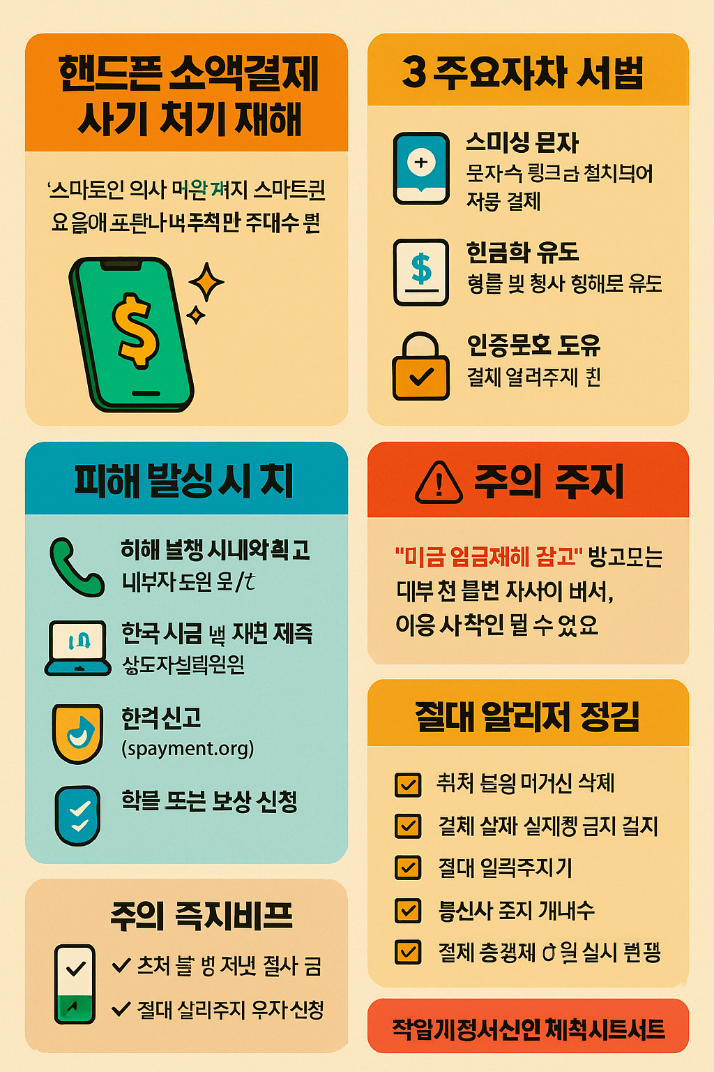 오늘은 핸드폰 소액결제 사기의 대표적인 수법과 대처법, 그리고 반드시 기억해야 할 예방법까지 알아보았습니다.