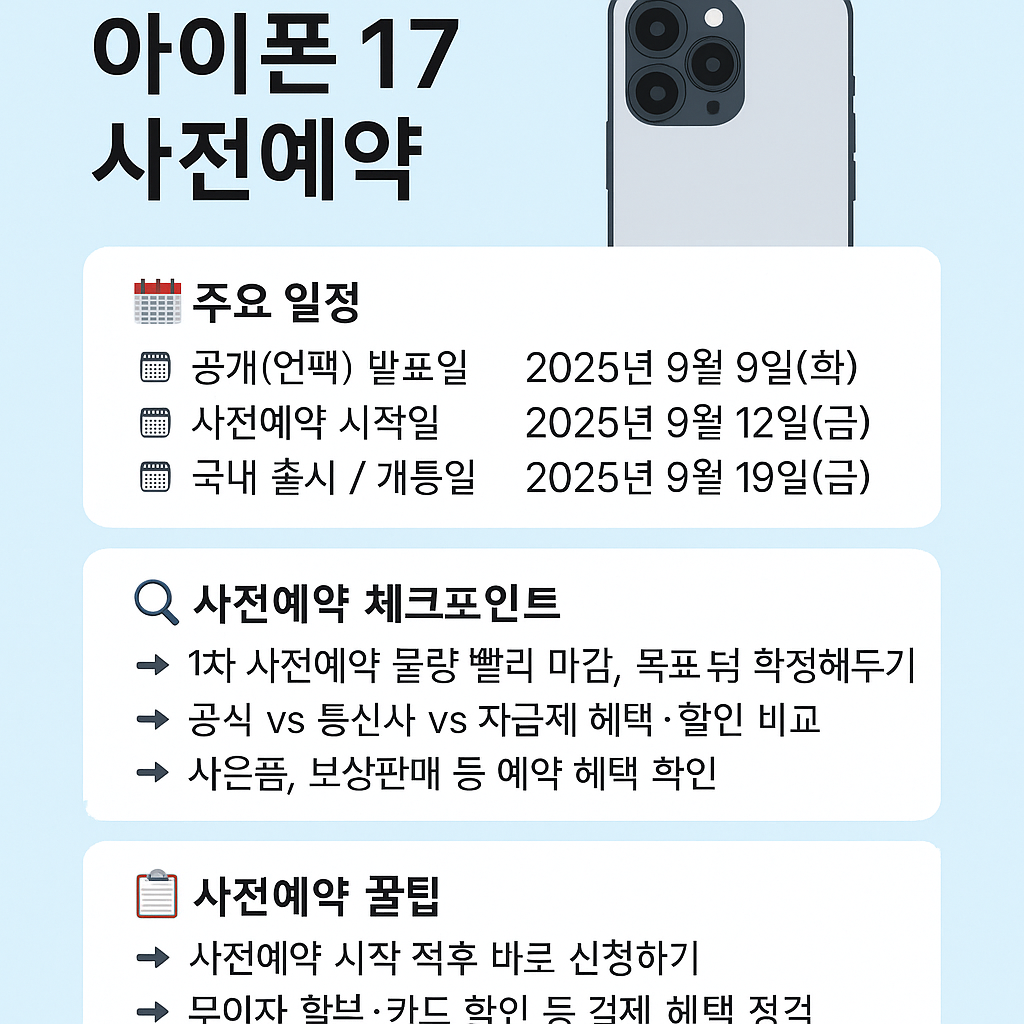 #아이폰17 #아이폰17사전예약 #아이폰17출시일 #아이폰17자급제 #아이폰17혜택 #아이폰17예약팁 #아이폰17가격 #아이폰17스펙 #아이폰17프로 #아이폰17프로맥스 #아이폰17구매 #아이폰17사전구매 #아이폰17사전예약일정 #아이폰17통신사 #아이폰17할부 #아이폰17보조금 #아이폰17사전예약방법 #아이폰17자급제혜택 #아이폰17예약전략 #아이폰17스마트폰