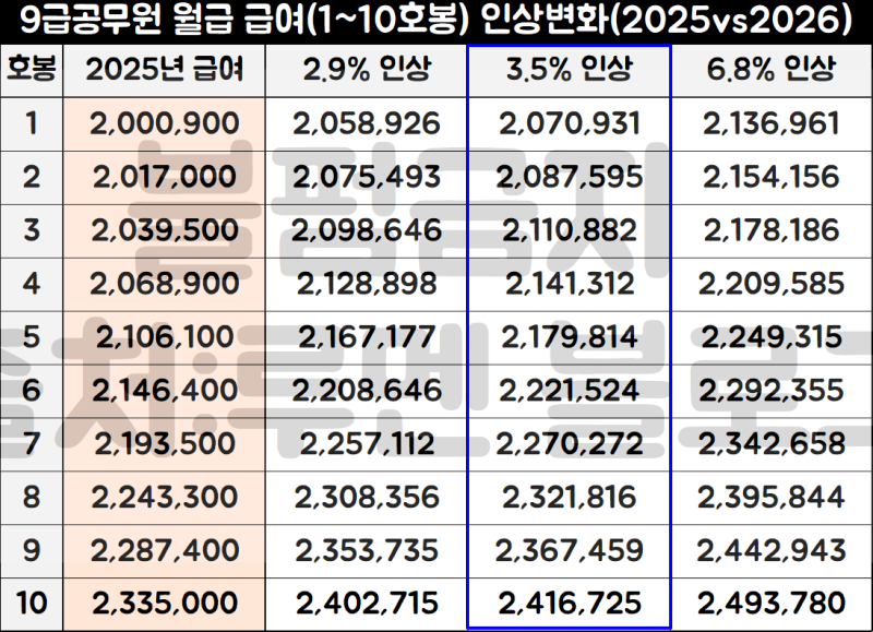 - 포인트: 이번 인상은 특정 직급에 가중치를 두었던 과거와 달리, 전 직급 동일하게 3.5%가 적용된다는 점에서 고위직으로 갈수록 인상액 자체는 더 커지는 구조입니다.