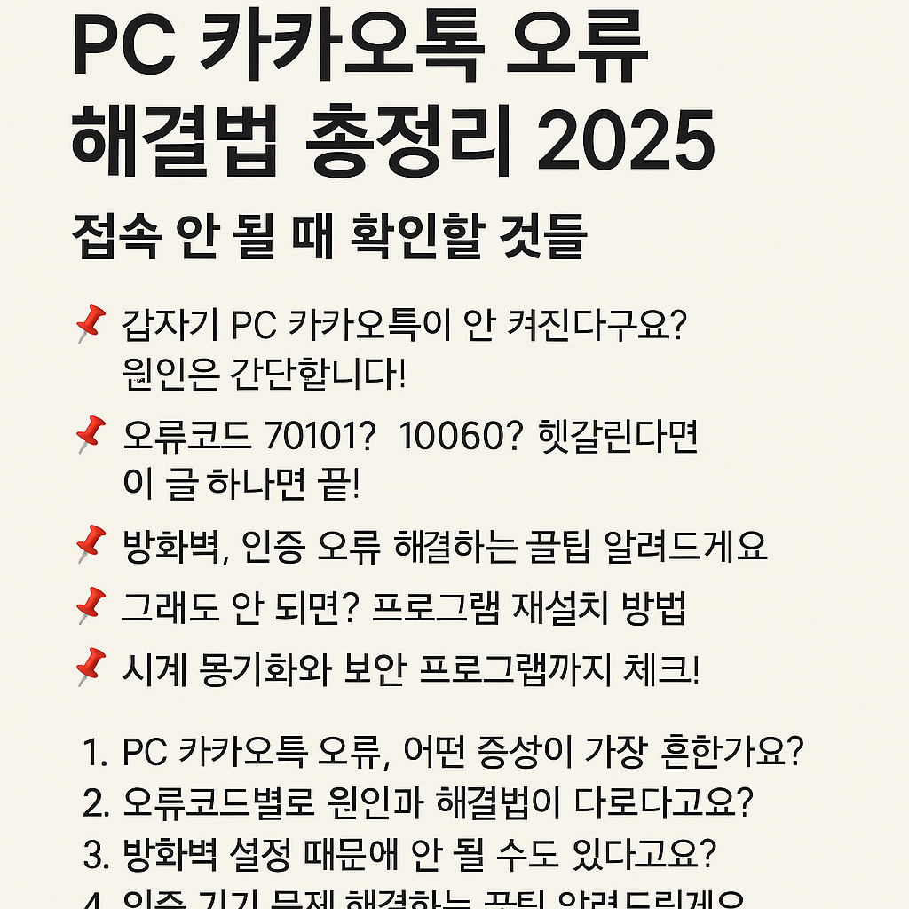 #PC카카오톡 #카카오톡오류 #카톡실행안됨 #카카오톡로그인실패 #오류코드70101 #오류코드10060 #방화벽오류 #카카오톡접속불가 #카카오톡인증오류 #카톡기기초과 #카톡재설치 #관리자권한실행 #카톡백신오류 #윈도우방화벽 #카카오톡동기화 #카카오톡보안 #PC카톡해결법 #카카오톡서버장애 #카카오고객센터 #카카오톡2025